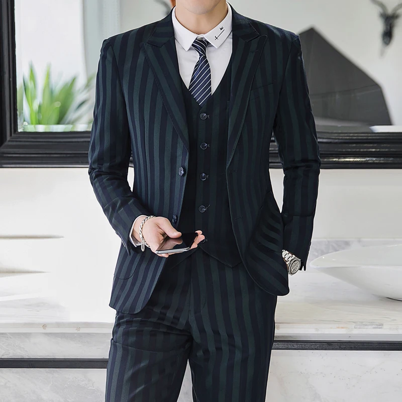 Blazer + trousers + vest 3 pieces / 2019 menswear 3 pieces striped fashion wedding suit coat jacket trousers waistcoat